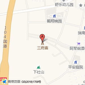 三府庙位于瑞安市(下社村)村庄级地名东南方向202.741米的位置。