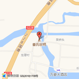 姜氏宗祠位于228国道与龙潜线交叉口东北160米(亨亨门业)建材五金市场西方向29.9184米的位置。