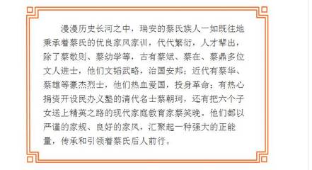 感谢慕雅婷、罗崱、郤瞲儿提供瑞安市家风家训囗述历史基本资料,感谢荣备、系翳鑫整理上传瑞安市家风家训囗述历史图片