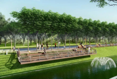 ➤沿公园路向东步行168米右转