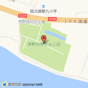 原野创意农业公园位于瓯北镇三江街道梅园中村104国道边(瓯北镇第九小学)小学北方向276.445米的位置。