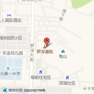 罗浮道院位于塔下路双塔公园(龟山道观)寺庙道观东方向99.878米的位置。