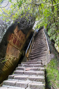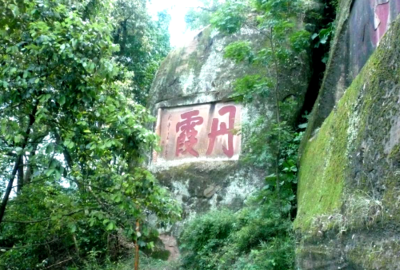 丹霞山摩崖石刻位于环城西路与景贤路交叉口西北280米(乐清城隍庙)寺庙道观东方向393.399米的位置。