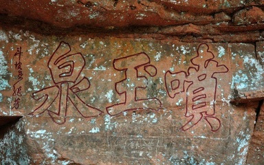丹霞山摩崖石刻位于水仙宫附近(承美公园)公园西南方向341.66米的位置。