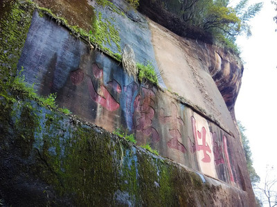 丹霞山摩崖石刻位于仓桥村沐箫路五号(沐箫寺)寺庙道观东南方向765.778米的位置。