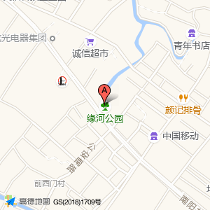 缘河公园位于镇西南路与兴盛路交叉口西20米(西门村党群服务中心)乡镇以下级政府及事业单位东南方向169.156米的位置。