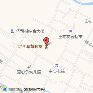 地团基督教堂位于王宅花园华平路38号(花园幼儿园)幼儿园东方向310.2米的位置。