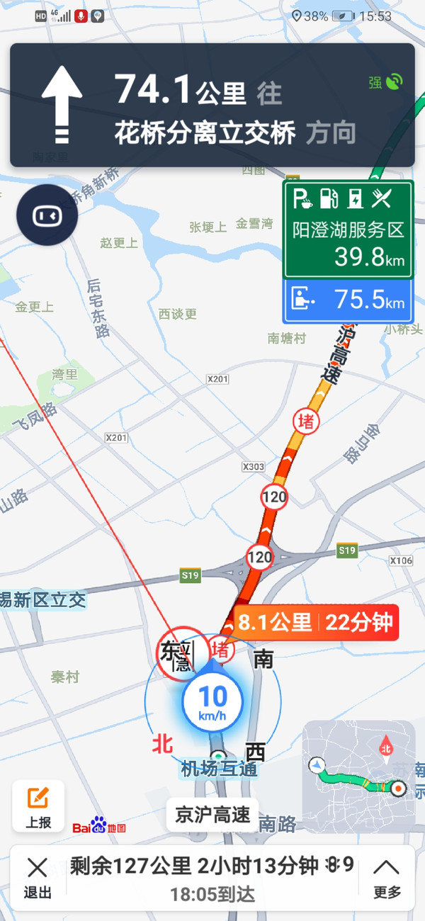 沿汤家桥路向北行驶1.3千米右转进入主路