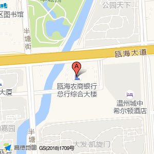 瓯海农商银行总行综合大楼周边地名,附近道路有哪些,瓯海农商银行总行综合大楼旁边有半塘街,东三路,龙跃街,商汇路,半塘路,仁汇路,商务大道,沉木桥街,河滨路,康健路,东园街,旭华北路,凤鸣街,半塘河绿道,古岸路,礼汇路,瓯海区,龙飞路,云飞路,旭华南路,等等地名。