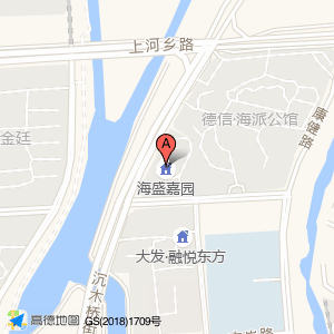 海盛嘉园位于沉木桥街与上河乡路交叉口西北20米(荣安·汇学府(建设中))商务住宅相关北方向262.734米的位置。