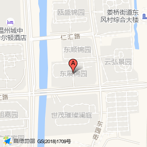 东展锦园位于商务大道与仁汇路交叉口北100米(瓯盛锦园)住宅小区北方向263.406米的位置。