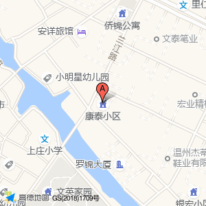 康泰小区位于龙湾区上庄小学东南门旁(上庄村文化礼堂)科教文化场所西南方向206.842米的位置。