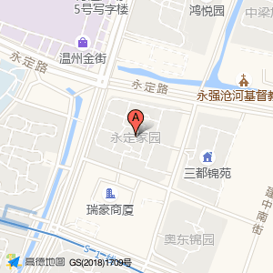 永定家园位于东嘉路与永定路交叉口西南80米(温州市公安局交通警察支队三大队三中队)交通管理机构东方向90.163米的位置。