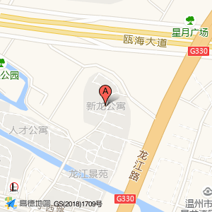 新龙公寓位于瓯海大道辅路与龙江路交叉口西北40米(星月广场)城市广场东北方向359.949米的位置。