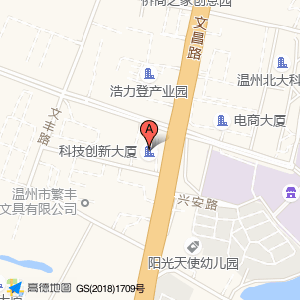 科技创新大厦位于文昌路与兴区路交叉口东南100米(温州环太罗山科创走廊)产业园区东方向138.665米的位置。