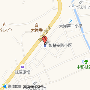 智慧安防小区位于天河镇大禅市菜场二楼(小状元幼儿园)幼儿园南方向272.976米的位置。
