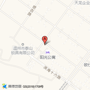 滨海阳光创客小镇位于滨海园区滨海十六路582号(温州市泰山锁具有限公司)公司西方向155.617米的位置。