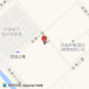 中国电子温州信息港二期17号楼位于金海二道与滨海十二路交叉口西60米(百威英博啤酒有限公司项目部)公司东方向394.681米的位置。