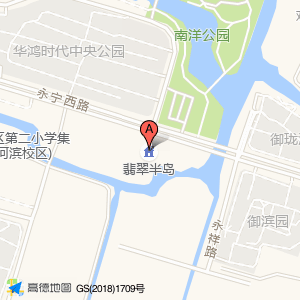 翡翠半岛(建设中)位于永宁西路1366号(滨翠园(建设中))住宅小区西方向89.9215米的位置。