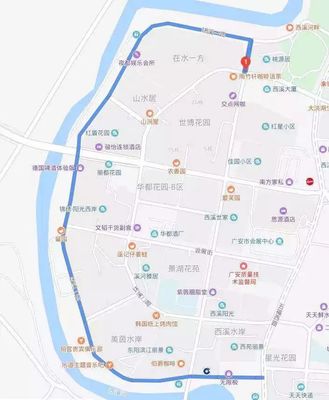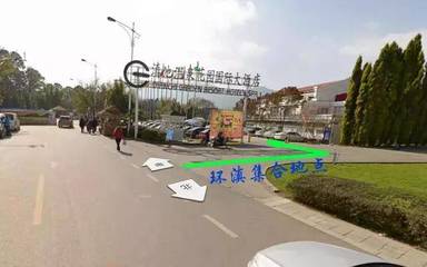 ➤沿广场路向南步行1305米向右前方行走