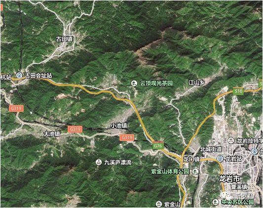 沿104国道向西南行驶559米直行进入隧道