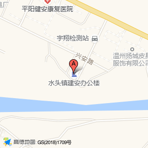 水头镇建安办公楼位于水头镇建安大道97号(平阳健安康复医院)综合医院北方向337.403米的位置。