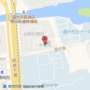 书馨苑位于梧田大道温中路74号(温州市五十一中学)中学东方向261.21米的位置。