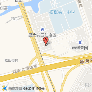 盛大花园住宅区南区位于梧田街道盛新路2号(梧埏第一中学(建设中))中学东北方向260.336米的位置。