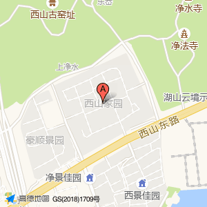 西山家园位于西山东路40号(西山家园)住宅小区中心方向0米的位置。