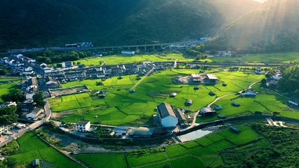➤沿平阳县塘河绿道向西北步行70米向左前方行走
