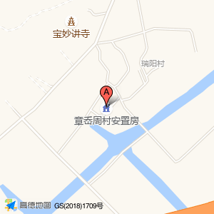 章岙周村安置房位于万全镇瑞阳村章周165号(宝妙讲寺)寺庙道观北方向256.042米的位置。