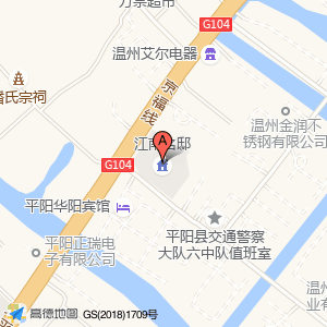 江南名邸位于郑松大道666号(平阳县交通警察大队六中队值班室)交通管理机构东南方向144.846米的位置。