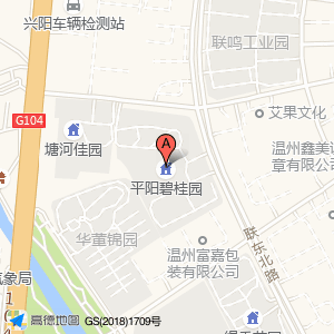 平阳碧桂园位于鸣山路18号(联鸣工业园)产业园区东北方向287.295米的位置。