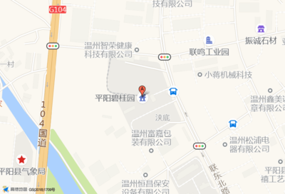 平阳碧桂园位于联东北路129号(温州智荣健康科技有限公司)公司北方向164.017米的位置。