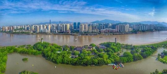 ➤沿瓯江南岸绿道向东南步行1915米向右前方行走