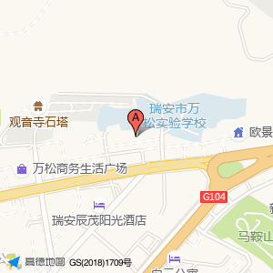 瑞安市万松实验学校占地面积约:19089㎡和温州市瑞安市阳光北路与阳光路交叉口北80米相距 ⇄ 16.5871m