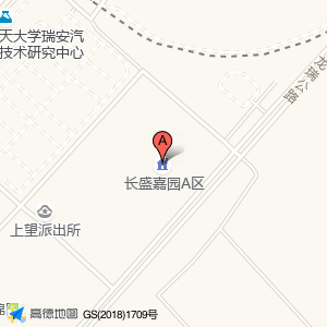 长盛嘉园A区位于经济开发区上东路1888号(北京航空航天大学瑞安汽车电子工程技术研究中心)科研机构西北方向417.913米的位置。