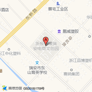 浙报传媒瑞安电商文创园位于上望街道瑞光大道1666号(浙江中化塑料)公司|专营店西方向256.339米的位置。