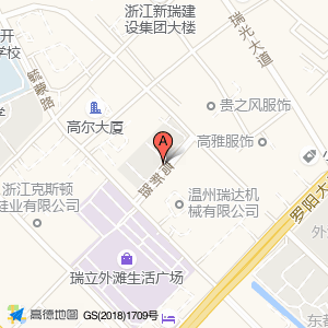 温州瑞达机械有限公司占地面积约:8460㎡和温州市瑞安市高新路与毓蒙路交叉口东北100米相距 ⇄ 17.1106m