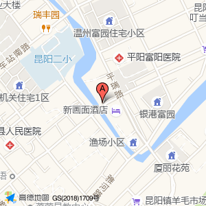 昆阳壹号院位于平瑞路261号(新画面酒店(平阳水产店))宾馆酒店东方向44.8566米的位置。