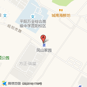 凤山家园位于规划支路与昆鳌大道交叉口东北40米(城南社区)住宅小区西北方向435.233米的位置。