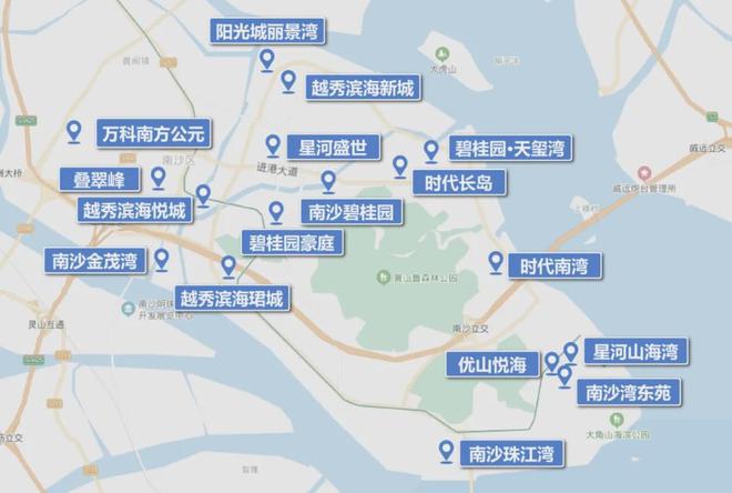 滨海丽景湾位于正威大道和广场路之间(滨海公园)公园北方向801.202米的位置。