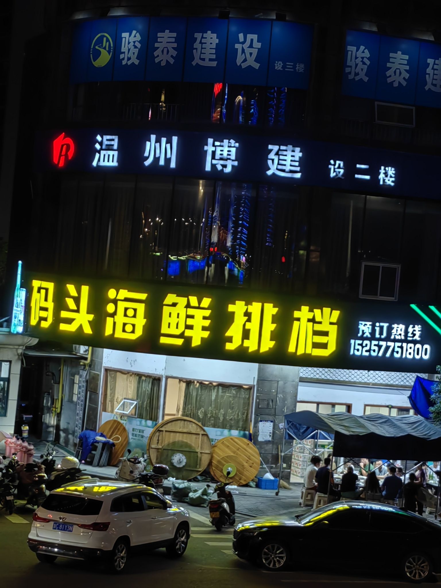滨江大厦位于鳌江镇滨江大厦北楼栈前街69号(船老大海鲜大排档(鳌江镇滨江大厦店))海鲜酒楼西北方向38.4903米的位置。