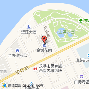 金城花园位于江湾路与沿江路交叉口西北140米(龙港外滩)公园东北方向312.431米的位置。