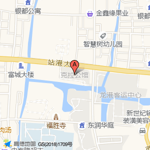 克拉公馆位于站港大道571附近(东润华庭)住宅小区南方向213.376米的位置。