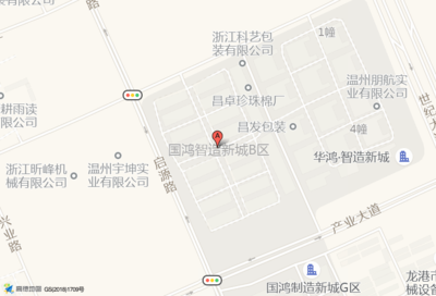 国鸿智造新城B区位于产业大道国鸿工业园A区3幢1单元(温州朋航实业有限公司)公司东方向299.75米的位置。