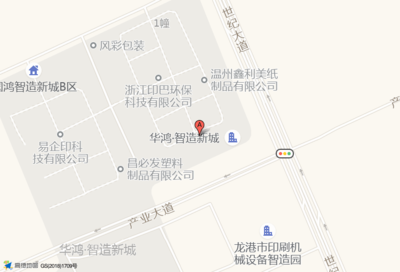 国鸿智造新城B区位于新城纬二支路8号四楼(温州麦龙包装有限公司)公司西北方向371.95米的位置。