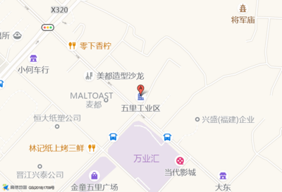 五林工业区位于沈海物流园东门旁(美如灯饰)家居建材市场东南方向223.887米的位置。
