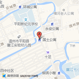 国土公寓位于园林东路132号(温州市平阳县鳌江实验幼儿园(园林路))幼儿园西方向166.619米的位置。