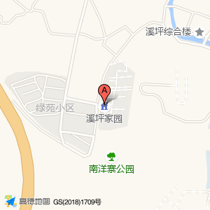 溪坪家园位于溪坪村(绿苑小区9幢)楼栋号西方向206.601米的位置。
